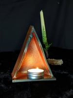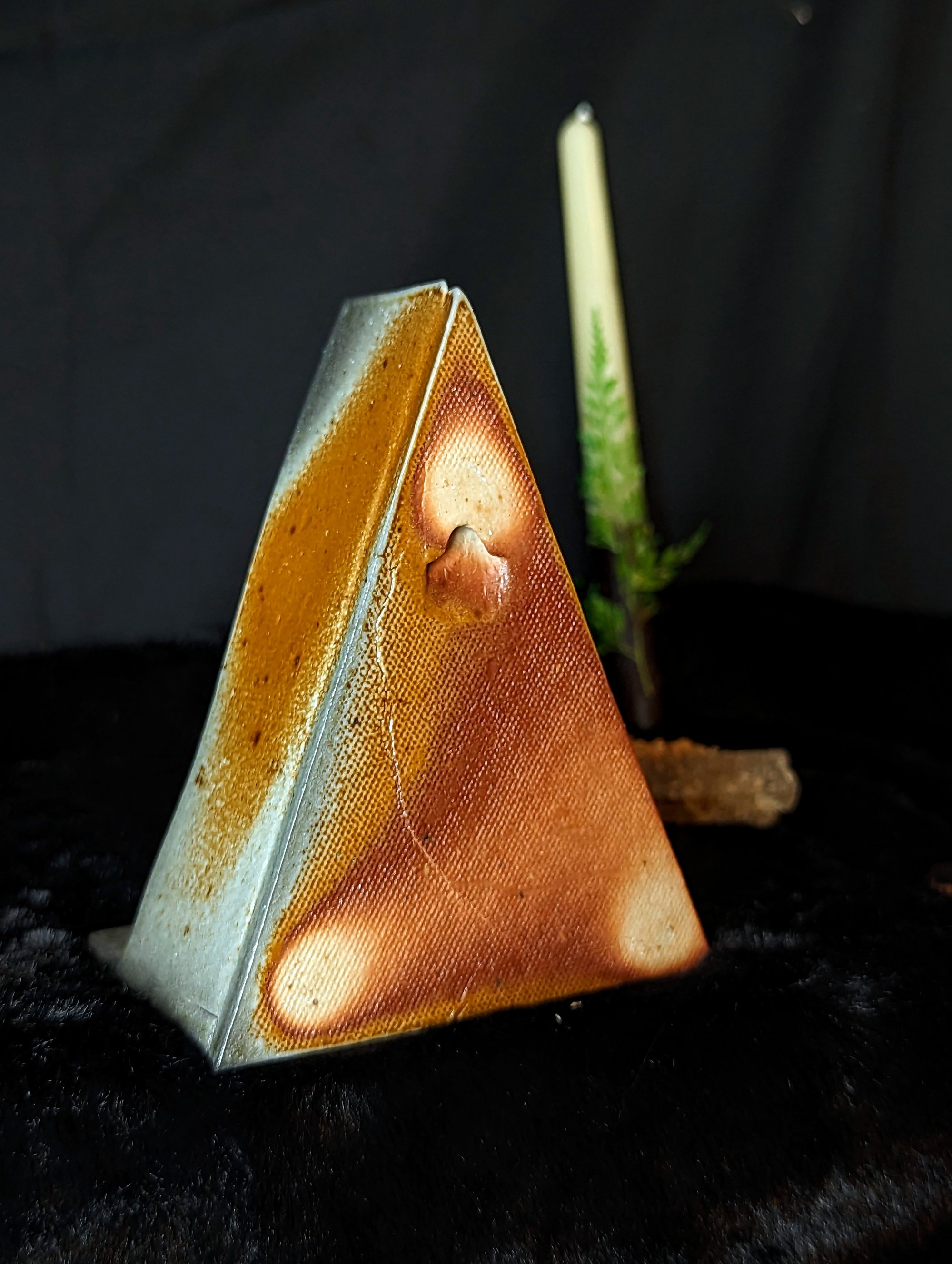 Small triangle slab built altar with a carved out notch on the back to lay flush up against a wall on a nail. Perfect for your sacred spaces, for candles, crystals, air plants and so much more ✨