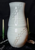 A large vase made in two parts, with chain carvings dancing over the surface.