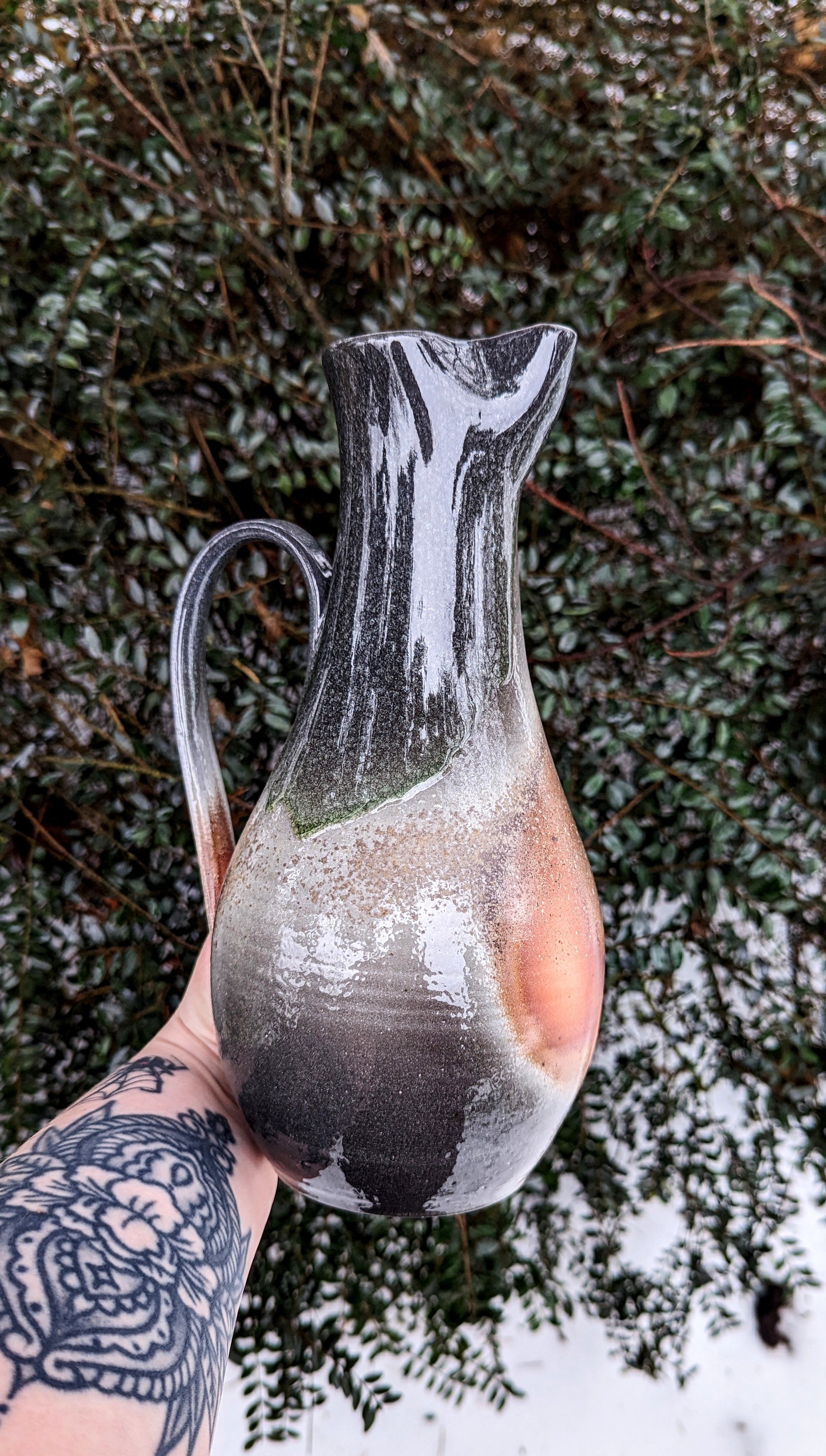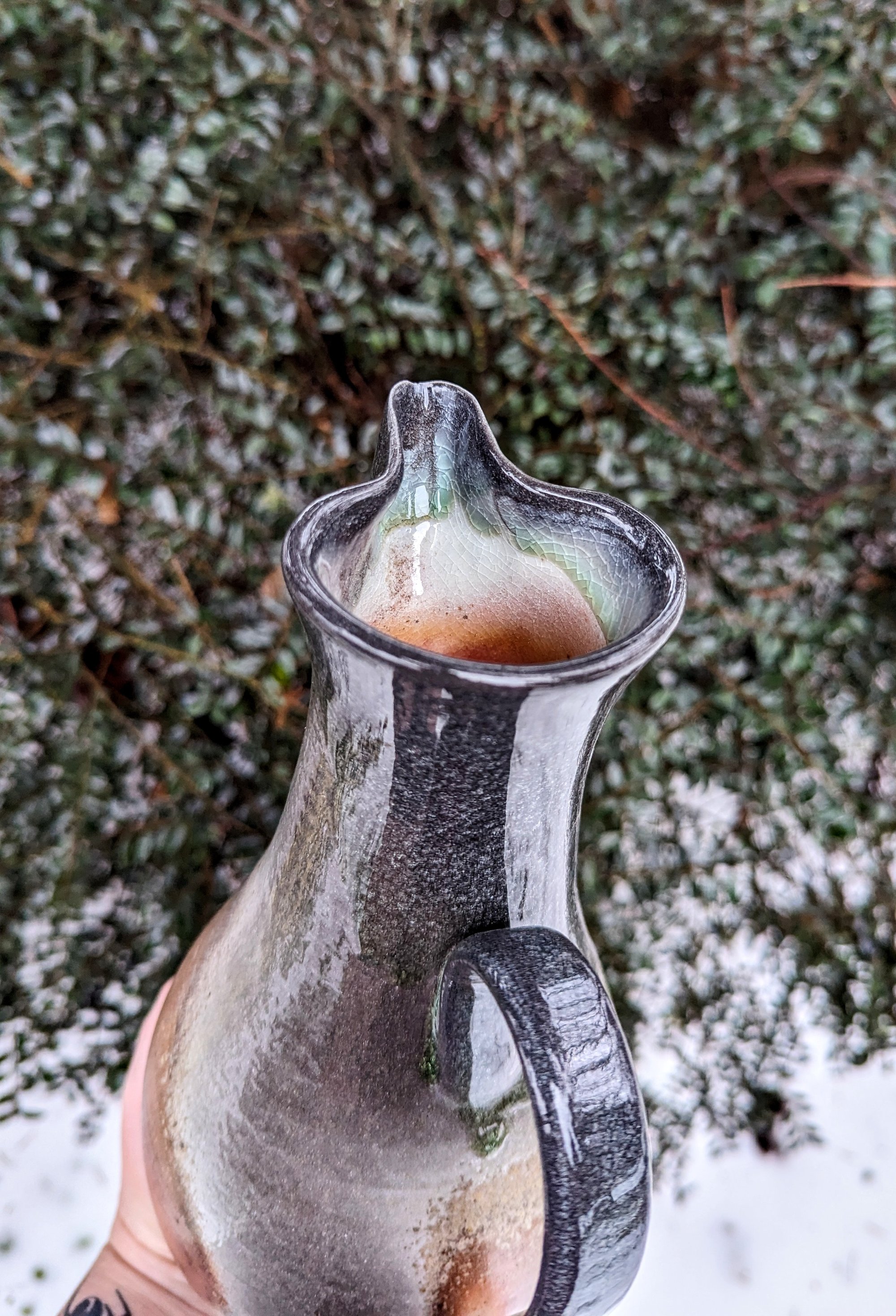 Named after the Norse goddess of winter, this pitcher has a beautiful glass melt draping one side and a peachy bare clay accent at the base. ✨